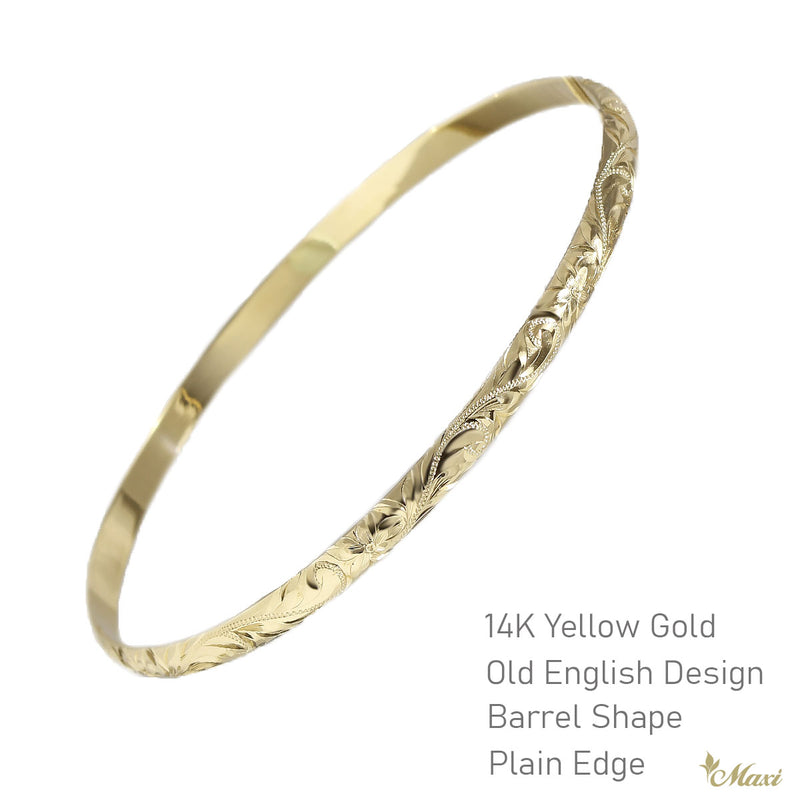 3mm Barrel Bangle Bracelet - Old Maile Design [Silver 925]