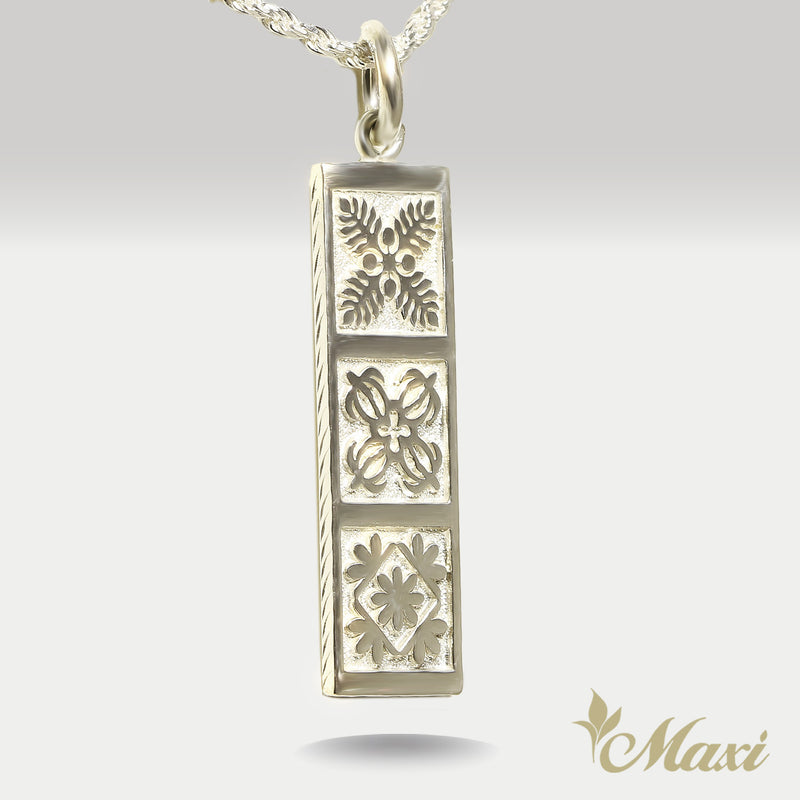 Hawaiian Quilt Pendant-Kukui,Honu,Naupaka [Silver 925]